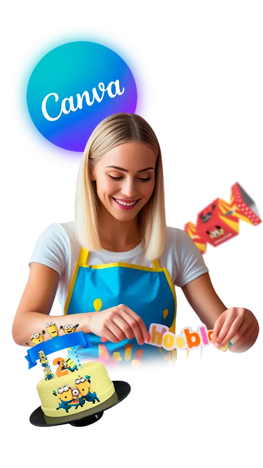 Você terá acesso ao nosso curso completo, te ensinaremos todo o passo a passo para criar festas incrivéis no Canva.